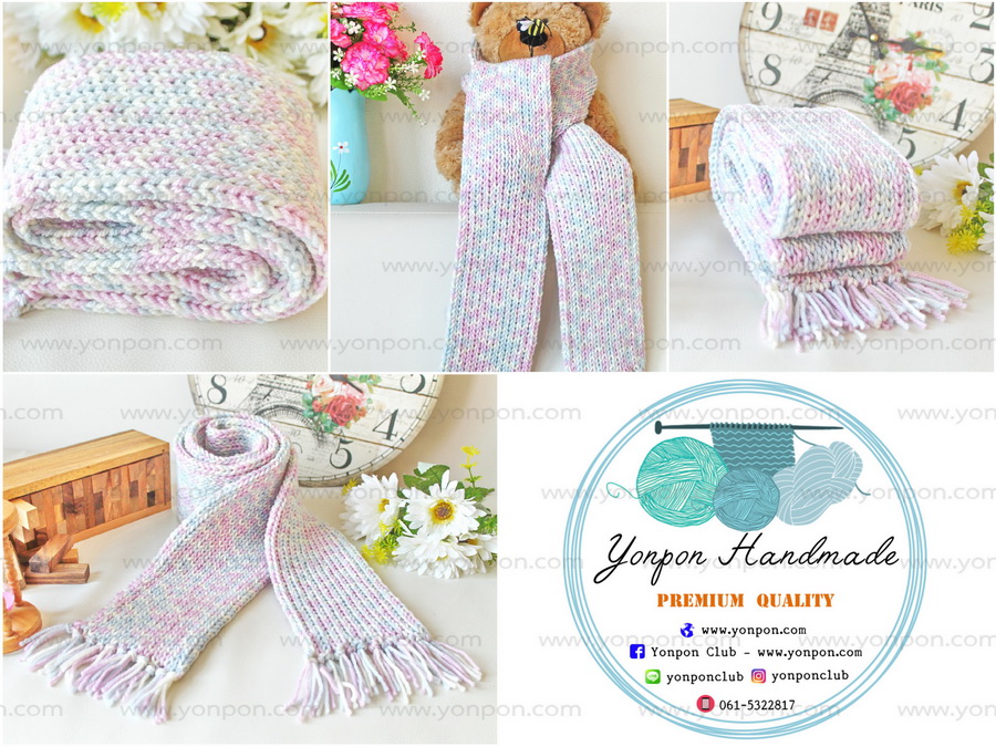 ผ้าพันคอไหมพรม Scarf หนาและนุ่มมาก ไหมคุณภาพดี ไหมพรมสียูนิคอนโพนี่พาสเทล